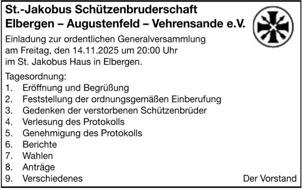 Am Dienstag, 08. Oktober 2019, machte sich eine Gruppe von 45 Teilnehmern auf die Reise nach Spanien, um dort gemeinsam auf dem Jakobsweg nach Santiago de Compostela zu pilgern. Initiiert wurde dieses Angebot von der „St. Jakobus Schützenbruderschaft Elbergen – Augustenfeld – Vehrensande“ in Zusammenarbeit mit der Kirchengemeinde St. Vitus Löningen.